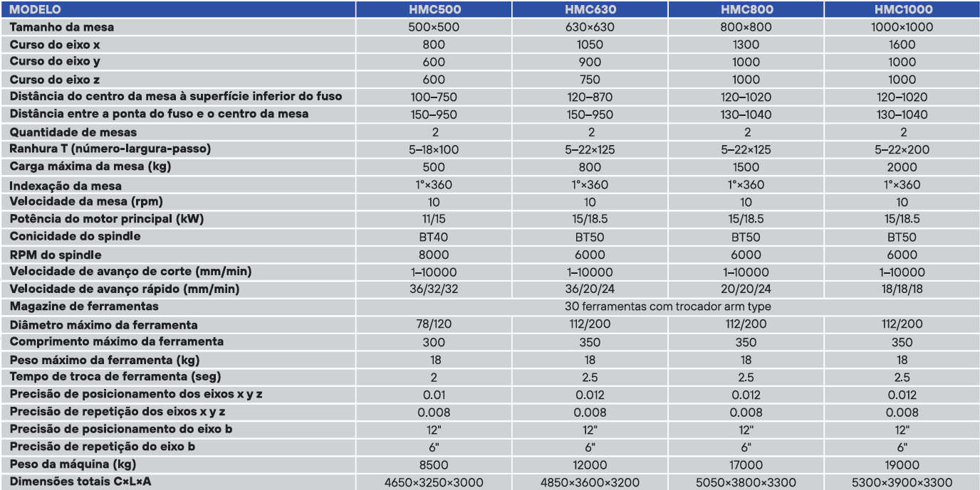 O sistema incorpora CNC industrial, lubrificação centralizada, refrigeração interna/externa, evacuação otimizada de cavacos e compatibilidade com ATC de média ou alta capacidade. Ideal para produção seriada e operações em células automatizadas, o HMC proporciona elevada estabilidade térmica, produtividade constante e tolerâncias restritas em ambientes de usinagem pesada.